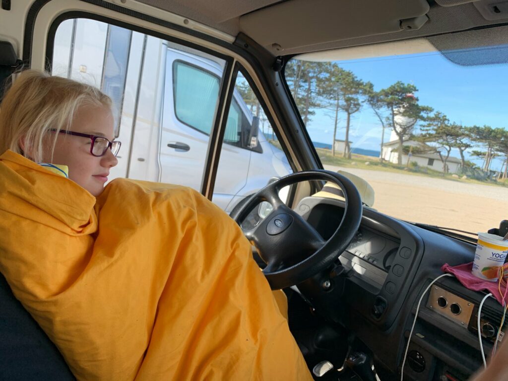 Norwegen 2020 3. Juli 2020 3. Juli 2020David LEUCHTTURM, BEFESTIGUNGSANLAGE, GRILLEN Besichtigung des Leuchtturms Sletterhage, Wanderung durch eine ehemaligen Befestigungsanlage mit Geocaching, Lotta grillt am WoMi, Fahrt zum Ebeltoft Hafen zur Übernachtung