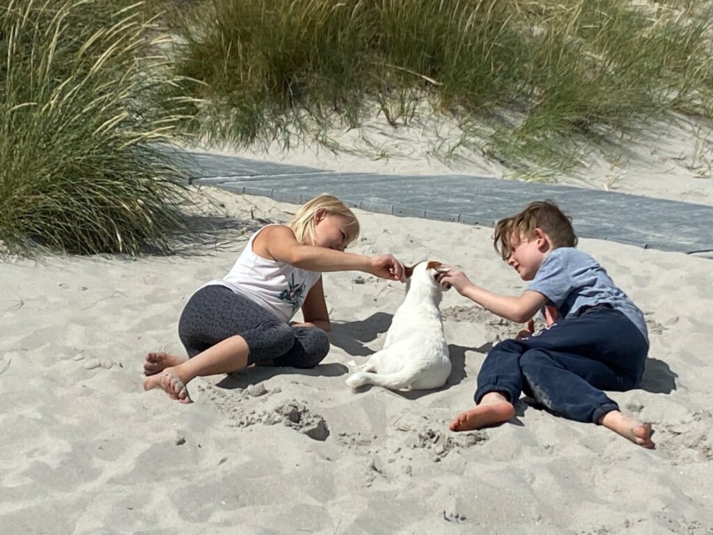 STRAND, KALTE DUSCHE , SONNENUNTERGANG AM NÖRDLICHSTEN PUNKT DÄNEMARKS Vormittag am Strand mit Wikinger Schach Kalte Dusche Fahrt nach Skagen Letzter freier WoMi-Parkplatz Sonnenuntergang Neue Freundin für Paula – Mathilda aus Unna Übernachtung an der nördlichsten Stelle Dänemark