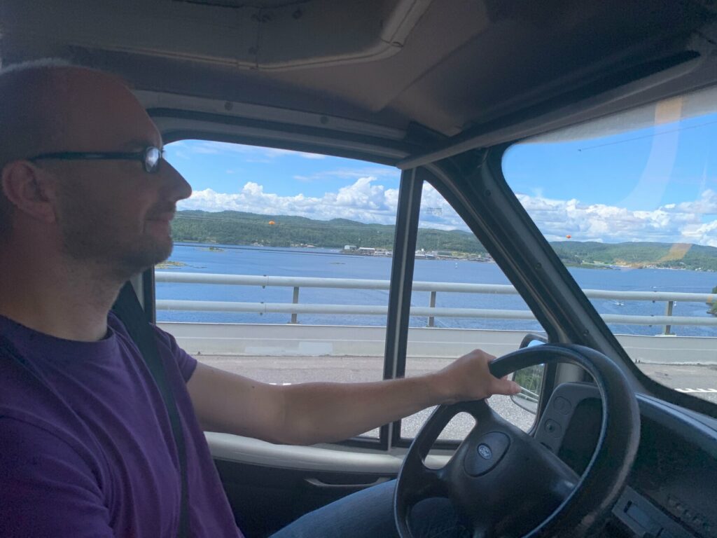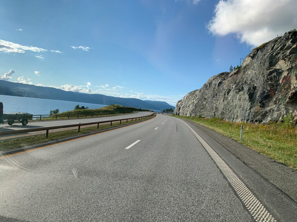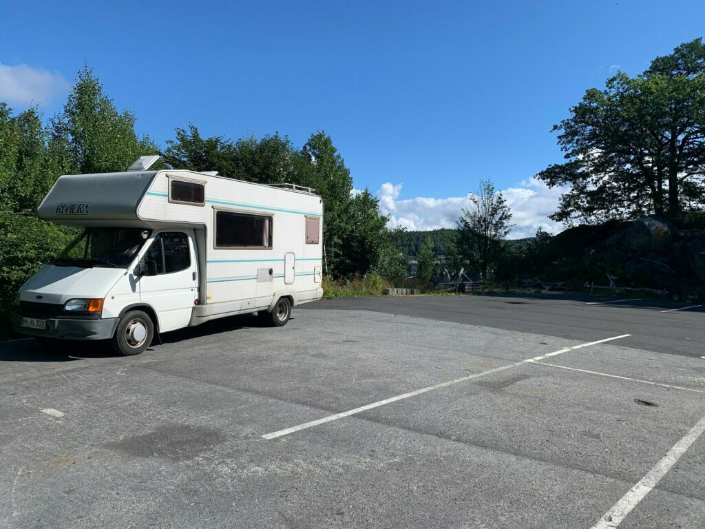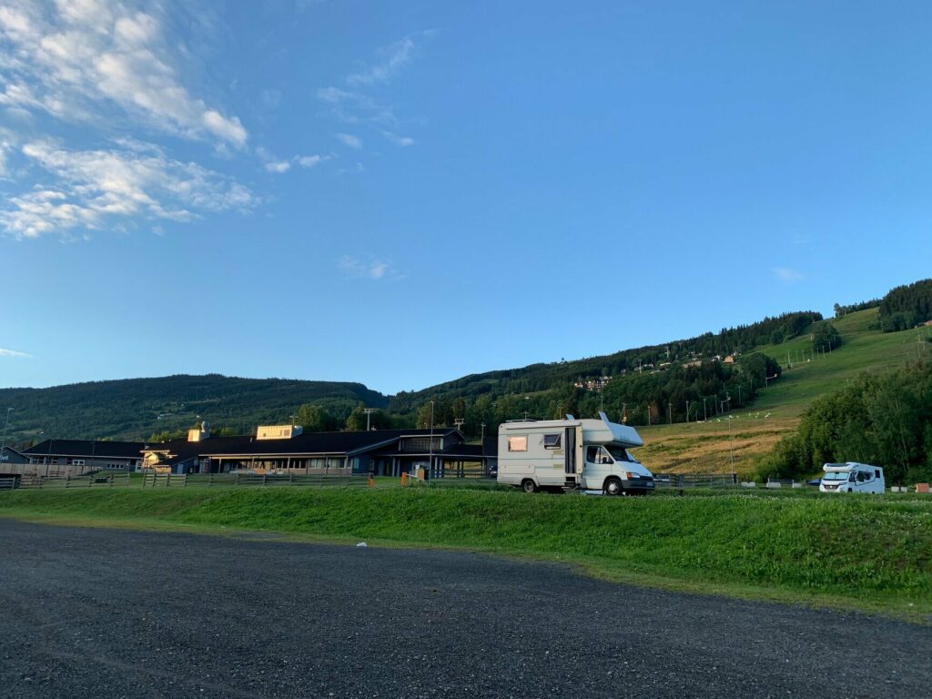 MIT DEM FORD ÜBERN FJORD Viele Tunnel, Brücken und Fjorde begleiten uns, wir fahren durch Oslo und machen eine längere Pause vorm Burger King Wifi-Hotspot. Später kommen wir bei Lillehammer an und wollten an einem See nächtigen. Aber nachdem wir direkt von den Mücken attackiert werden, fahren wir noch ein Stück weiter nördlich und übernachten da, wo andere im Winter Ski fahren 😉 und keine Mücken sind.