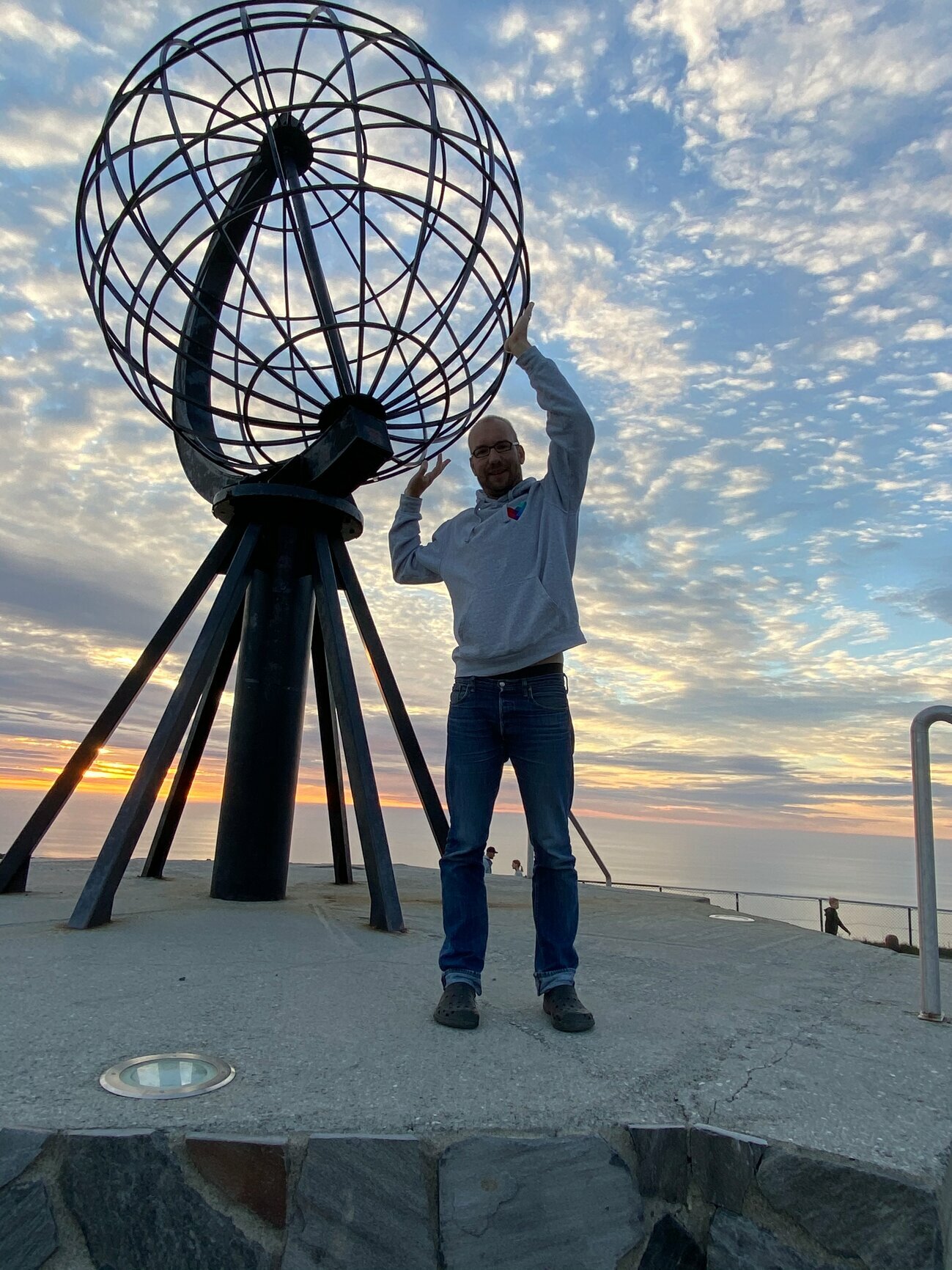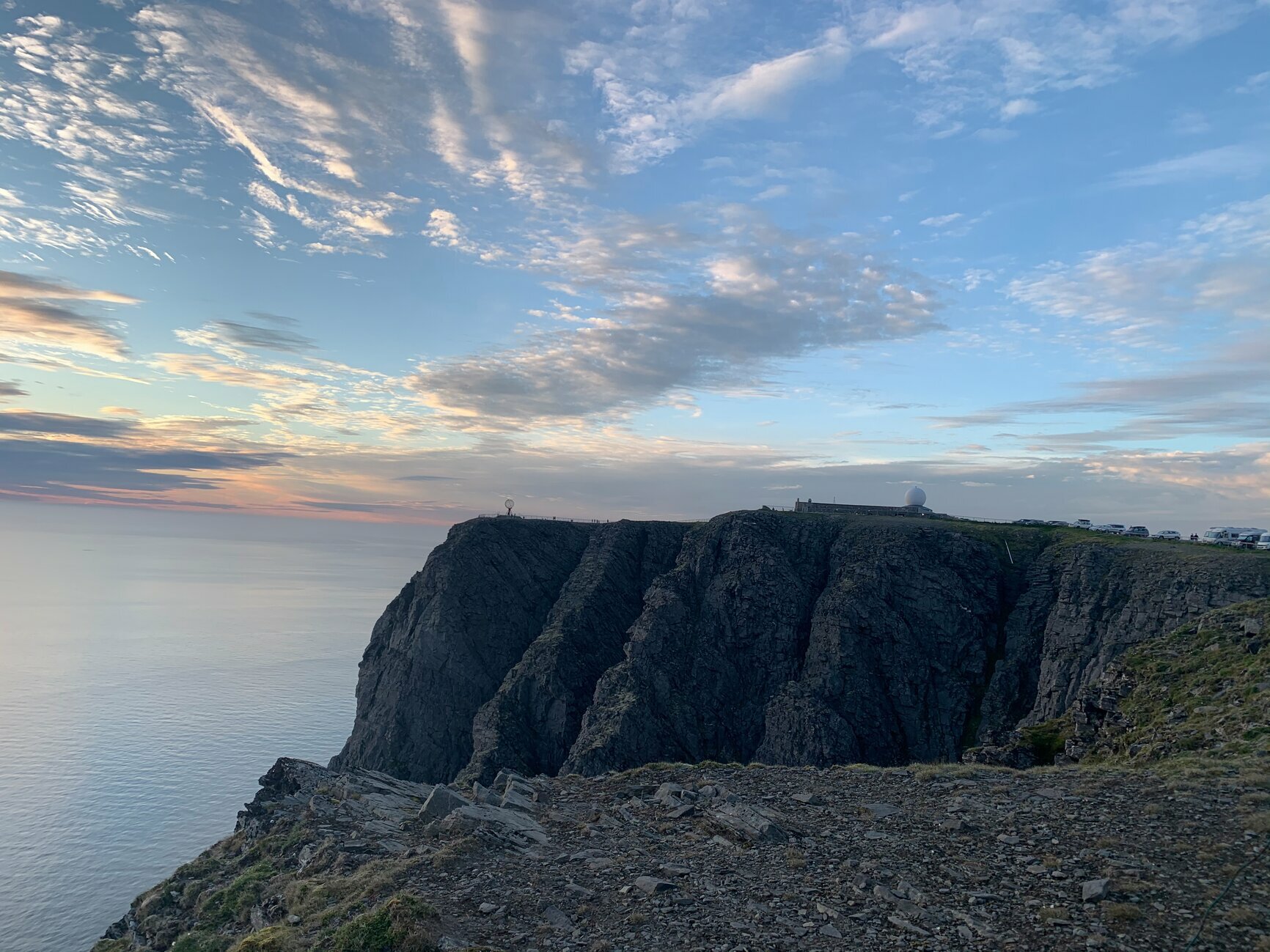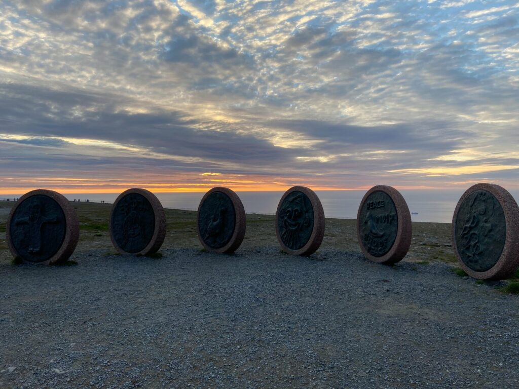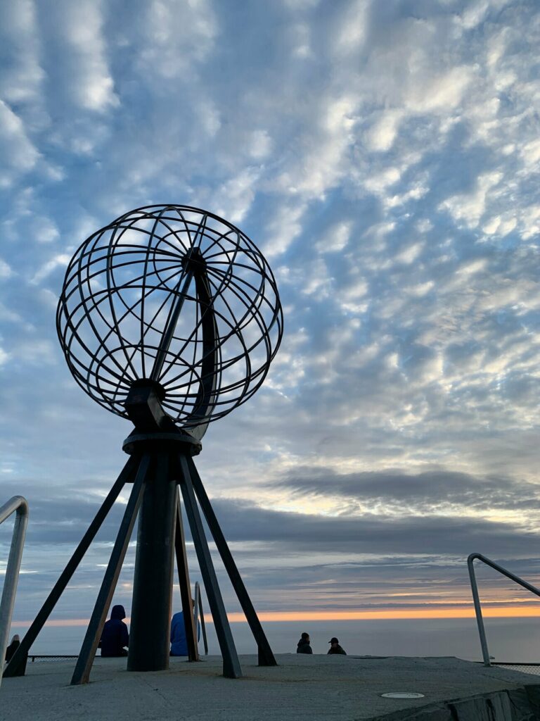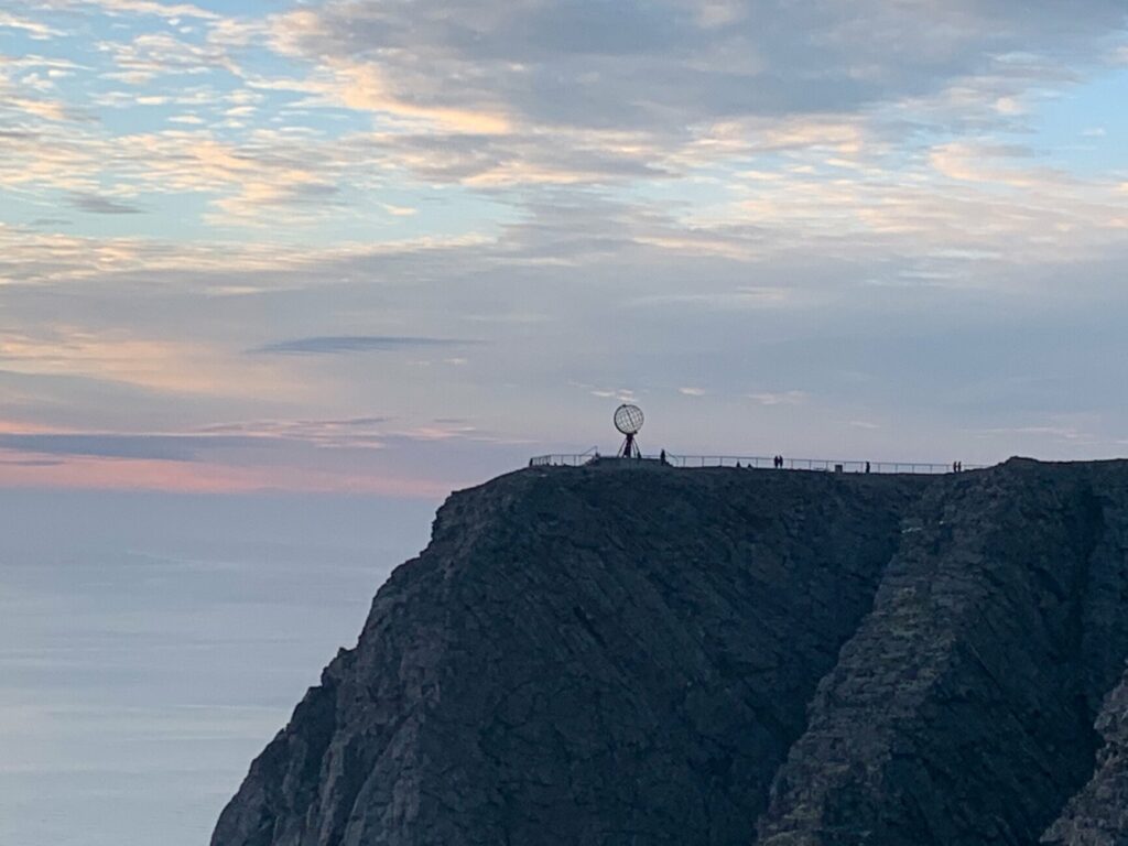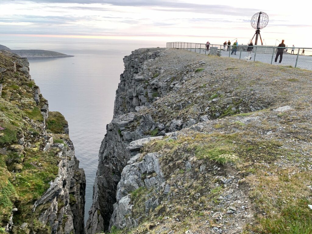 71° 10′ 21″ NORDKAP, POLARNACHT, MITTERNACHTSSONNE Das Nordkap ist ein ins Nordpolarmeer hineinragendes Kap an der Nordseite der norwegischen Insel Magerøya. Es liegt auf 71° 10′ 21″ nördlicher Breite, 514 Kilometer nördlich des Polarkreises und rund 2100 Kilometer südlich des Nordpols. Im Mittel geht die Sonne am Nordkap vom 20.11. bis zum 22.01. überhaupt nicht auf, während sie vom 14.05. bis zum 29.07. (79 Tage) immer über dem Horizont bleibt. Dass die Hellphase länger andauert als die Dunkelphase, liegt an der bedeutenden Höhe des Nordkaps über dem Meer. 1956 wurde die Straße von Honningsvåg zum Nordkap eröffnet. Bis dahin konnte das Nordkap per Schiff und anschliessendem Aufstieg über einen Klippenweg erreicht werden. 1999 öffnete den Nordkaptunnel. Dieser Tunnel, als drittlängster Unterwassertunnel Europas, ist 6875 m lang und unterquert mit einer maximalen Tiefe von 212 m den Magerøysund. Die größte Steigung beträgt 10 Prozent. Damit war die Zeit des Fährverkehrs Vergangenheit.
