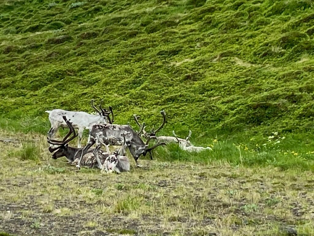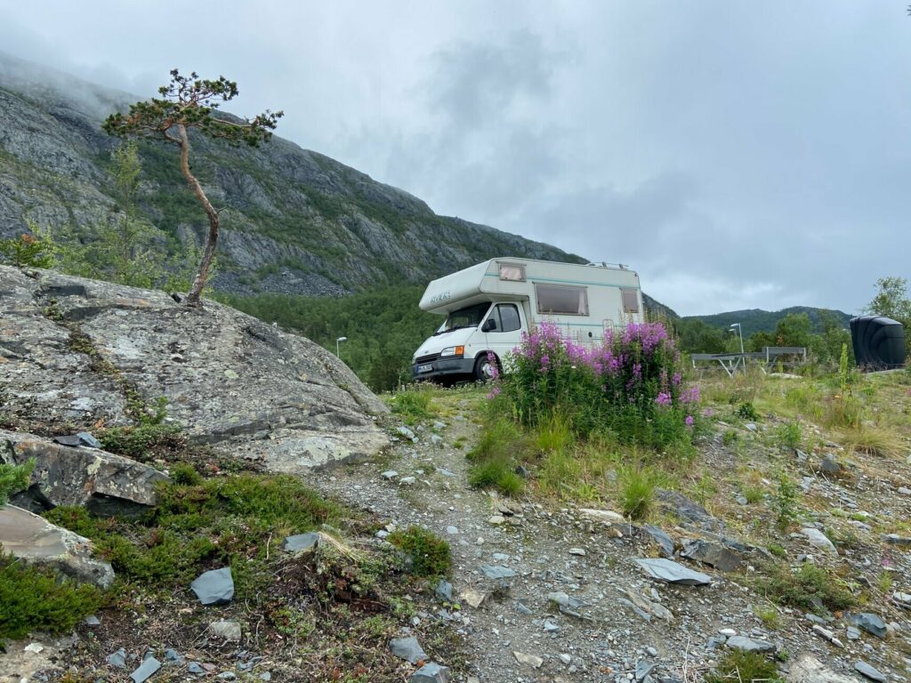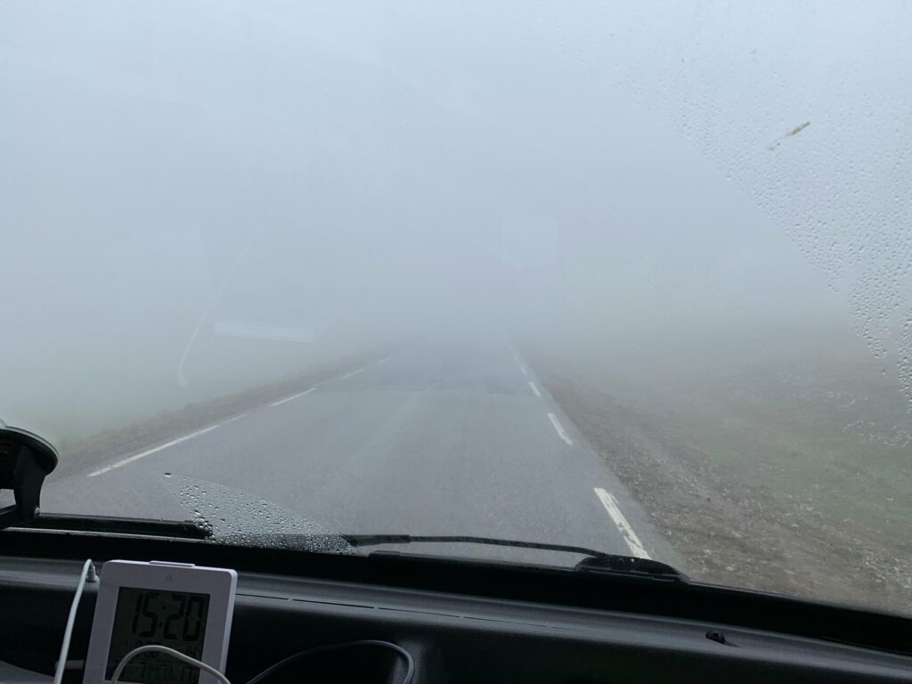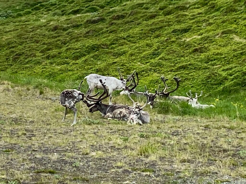 Wir starten mit Nebel in den Tag und bemerken mal wieder was für ein Glück wir hatten gestern angekommen zu sein. So kann das Nordkap auch aussehen, naja „sehen“ eigentlich nicht. Wir setzen unsere Fahrt langsam fort, leider fahren wir jetzt lange die selbe Strecke. Wir treffen wieder entspannte Rentier-Herden am Straßenrand und den Radwanderer Fabian aus Rostock. Unser Radwander-Herz schlägt höher. Er ist bereits seit 6 Wochen unterwegs über Schweden und Finnland, hat bereits 3500 km zurück gelegt und zeltet alleine in der Wildnis. Er will heute am Nordkap ankommen -Respekt-. Wir spendieren ihm noch eine Warnweste, denn die Sicht oben beträgt, wegen des Nebels, weniger als 5 Meter. Unser Nachtplatz präsentiert sich mit wunderschönen Blick auf den Kvaenvika Fjord. Leider wird unserer Schlaf durch einen lauten Parkplatz-Besucher gestört.