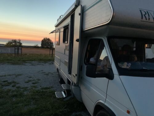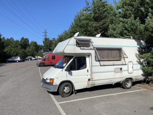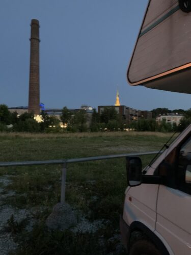 Wir fahren auf einen nahen Parkplatz, der 2 € für 24 Stunden kostet und schlafen bald ein.