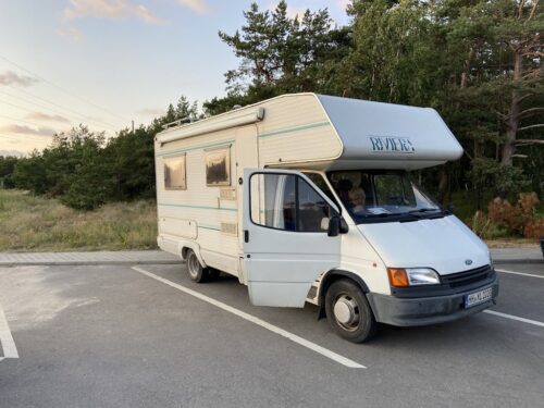 Unseren Übernachtungplatz finden wir heute auf einem ursprünglichen Stellplatz. Wir treffen niemanden mehr an, um uns anzumelden. Die Atmosphäre ist nett, ein par Litauer grillen und campen. Die Umgebung scheint verlassen und einsam, aber laute Musik aus der Ferne lässt auf das Wochenende und Feierfreudige schließen.