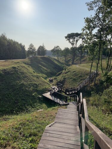 Der Kalniškės Hügel: Funde deuten darauf hin, dass der Hügel vor unserer Zeitrechnung bewohnt war. Auf der südwestlichen Seite des Hügels befindet sich eine Vorbergsiedlung.