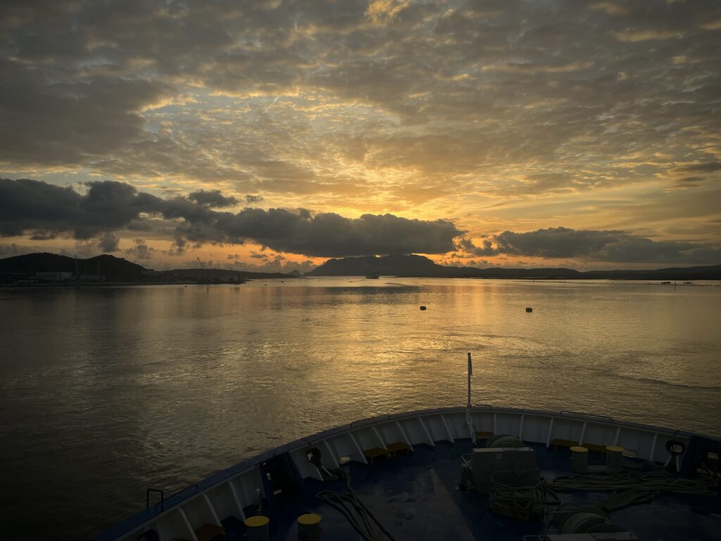 Am Morgen von der Fähre runter, gegen 8:30 Uhr endlich auf der Insel