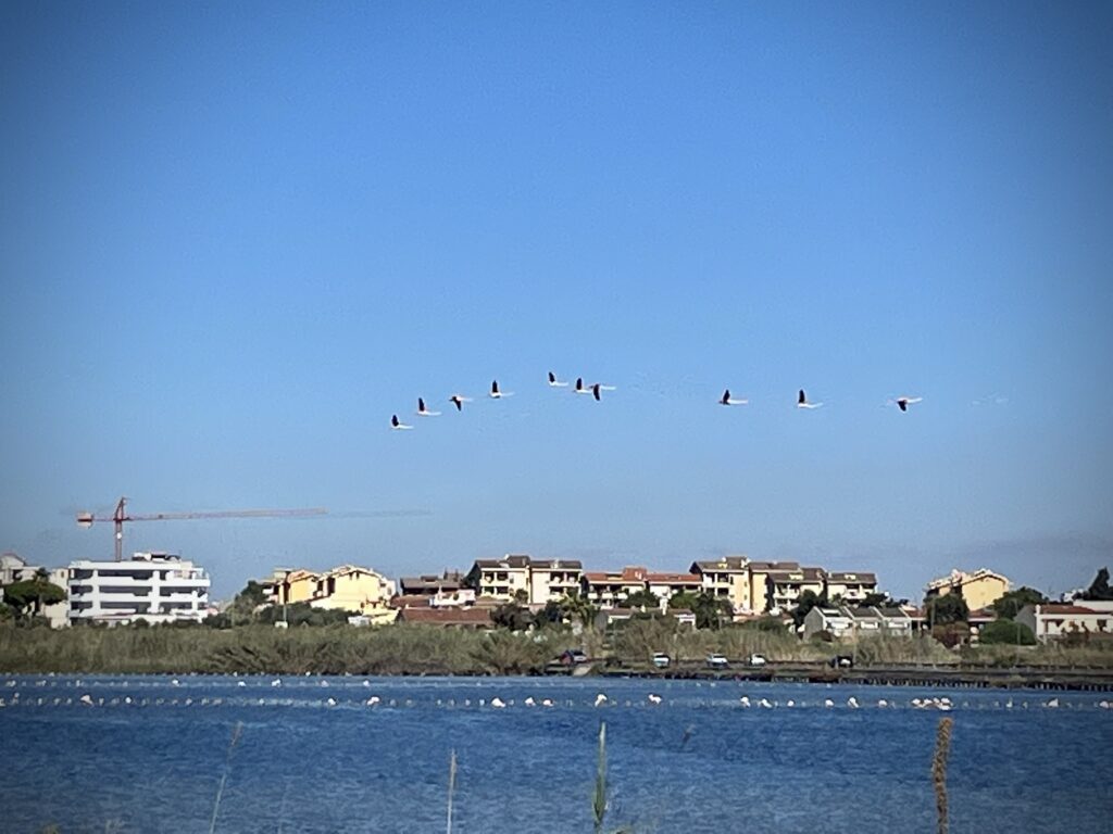 In den Salzseen vor den Toren der Stadt Cagliari suchen Flamingos in Seelenruhe nach Nahrung.