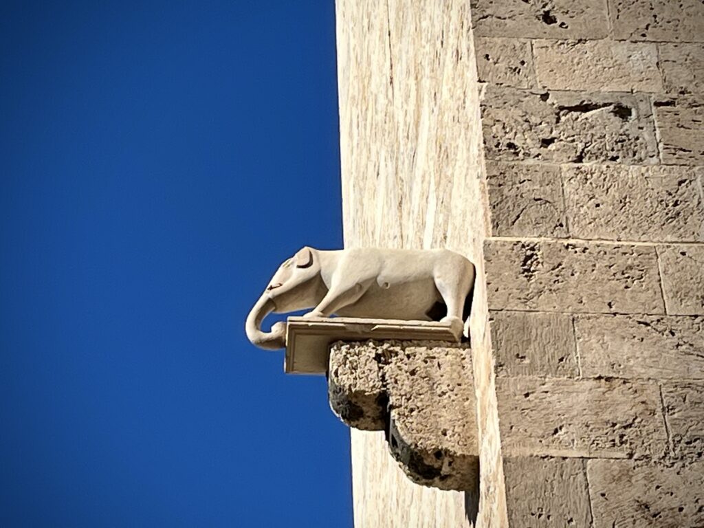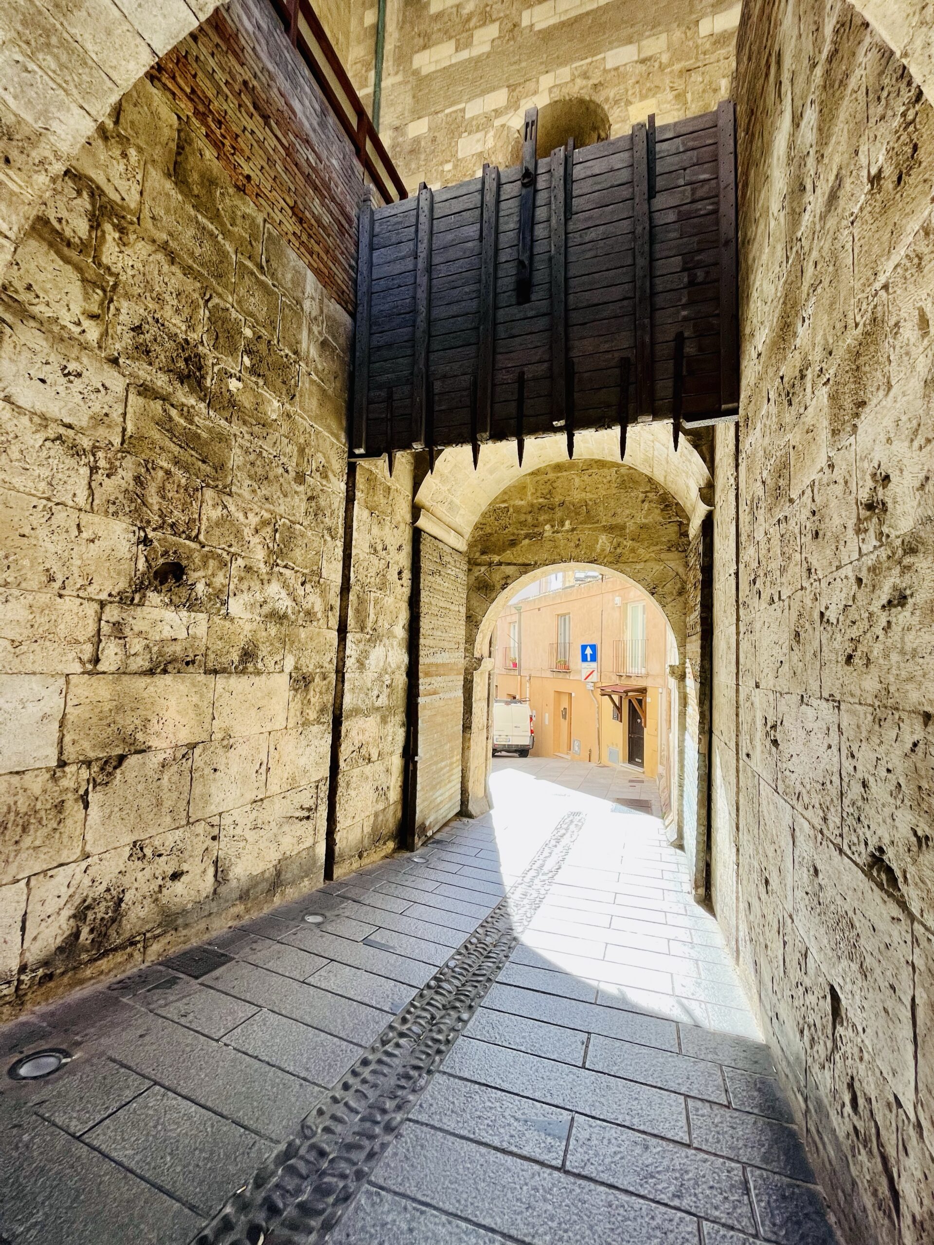 Jetzt kann das Sightseeing beginnen und es geht durch das „Torre del Elefante“ unter dessen mächtigen Tor mit schweren Falltüren aus Holz hindurch, weiter in Richtung „Kathedrale Santa Maria di Castello“.