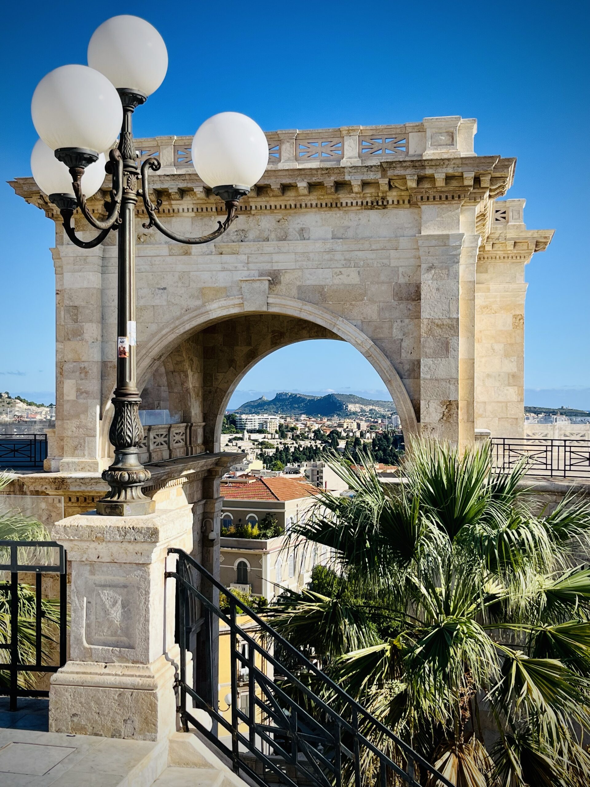 Mittelalterliche Gassen des Castelloviertels, das vollständigen von den imposanten Stadtmauern umgeben ist, führt uns zur „Bastione di Saint Remy“, dem wohl schönsten Platz der Stadt, von dessen Sonnenterrassen man einen weitem Blick über Stadt und Meer hat.