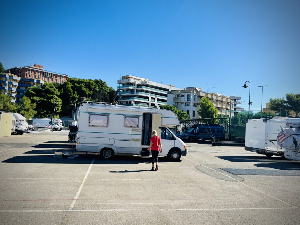 Der erste kostenpflichtige Stellplatz dieser Reise. Für 20 € richtig „netter“ Empfang („Wir sprechen nur Italienisch oder Französisch“. Diese Info kam auf Englisch.), aber gut wir brauchten die Entsorgung und diese war zu unserer Überraschung inklusive.