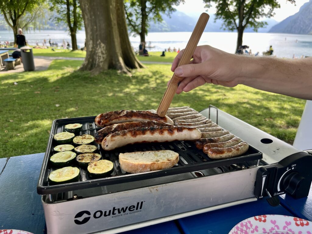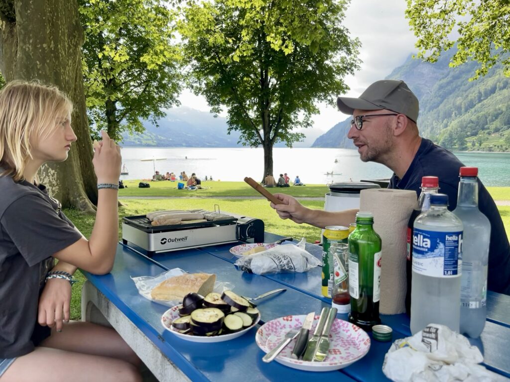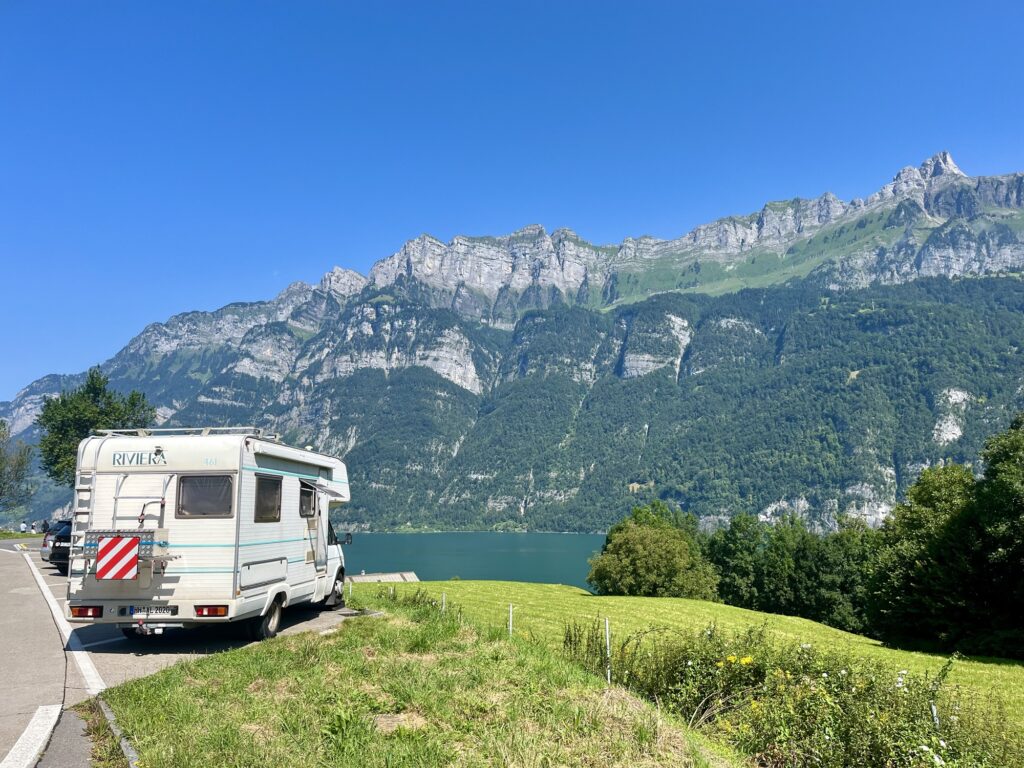 Am Walensee angekommen, parken wir für knappe 12,- CHF das Grillen und Chillen am See sowie das Baden im See und auch die Duschen sind dafür inklusive.