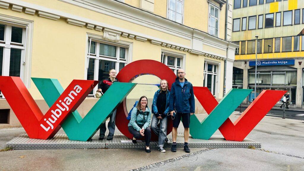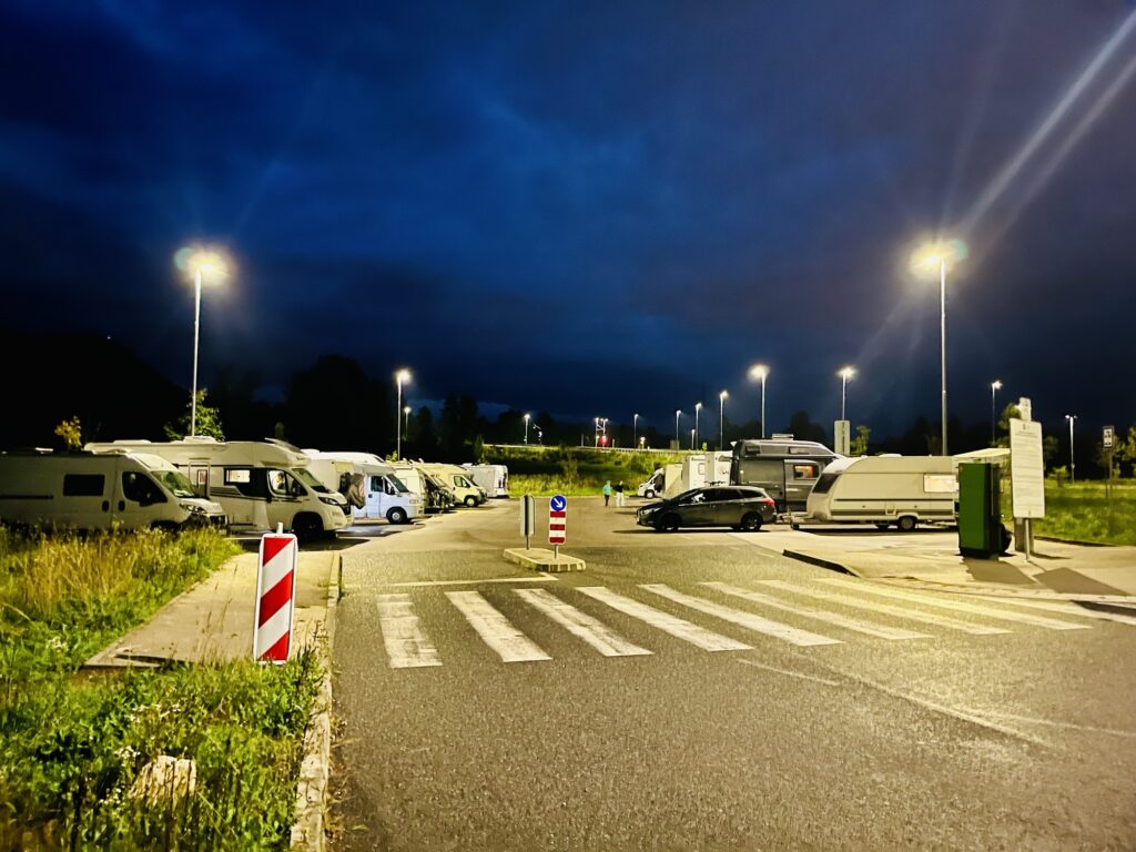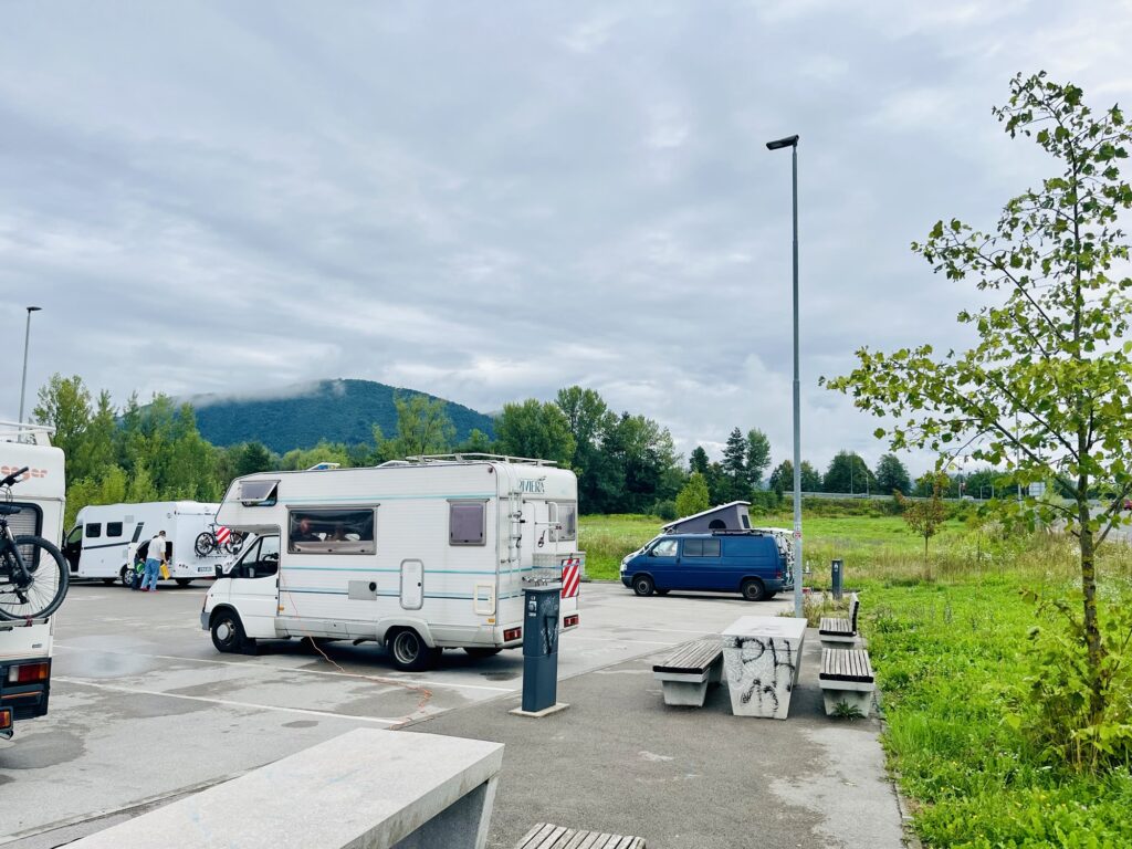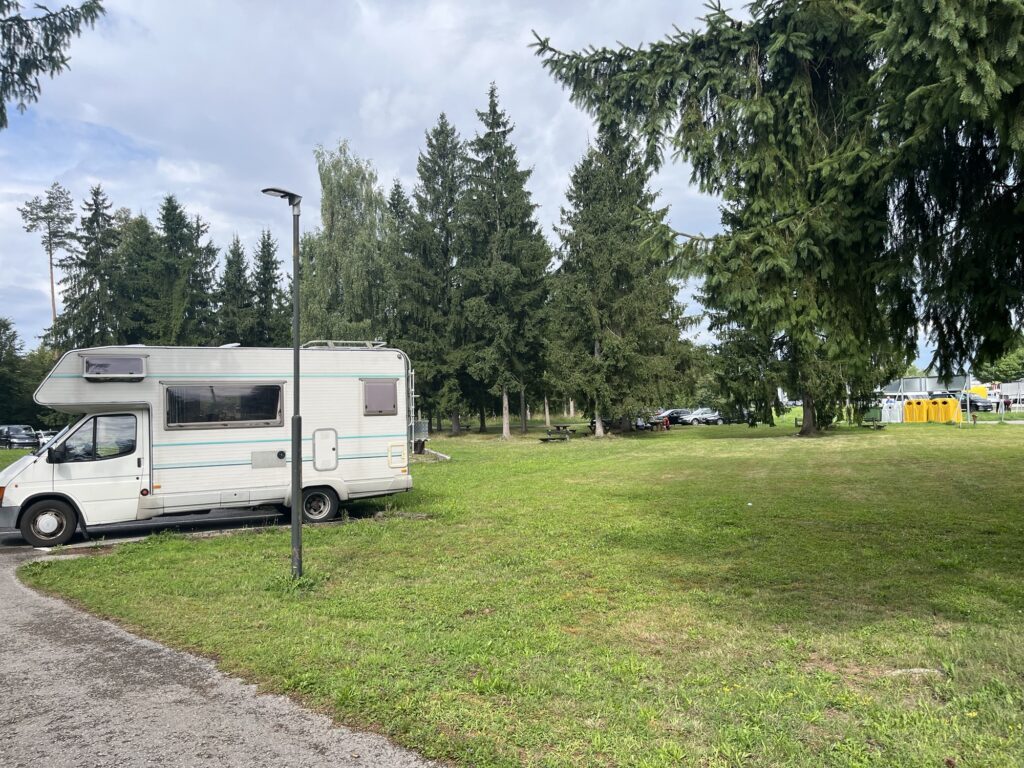 Wir kommen kurz nach 11 Uhr los und fahren einen nahen Parkplatz für 10,- die Nacht inkl. Strom und Ver- und Entsorgung an und mit Anbindung an den Bus nach Ljubljana.