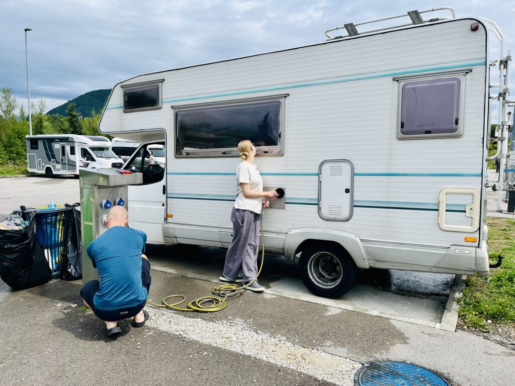 Wir ver- und entsorgen uns und nehmen die Fahrt wieder auf.